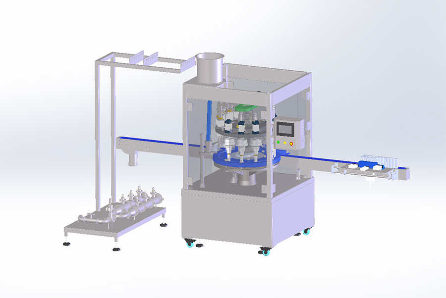 產品描述設備如下圖1: 此產線配置產品有(從前端到后端):回轉式高速上閥機組、離心式高速理閥機、供閥提升機、6工位高精度計量缸&單組增壓泵、6頭封口&6頭充氣一體機(正壓防爆電箱和防爆人機界面)。具有操作簡單,人機交互友好,故障指示等優(yōu)點。便于排查和排除故障。2.各機組完成的生產工藝和性能參數:A.回轉式高速上閥機組如圖2所示 圖2 型號:SG-QGQW25-150HSF回轉式高速上閥機,16工位回轉式高速上閥機汲取國外先進設備技術研發(fā)而成,機組由閥門提升機,轉盤式離心理閥機(此設備根據閥門形式非標定制)和高速回轉上閥機構成。工作原理為一個送閥軌道...